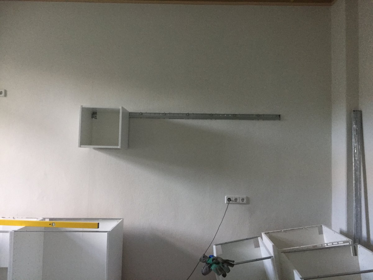 GSA rückt einen Schrank nach planrechts. Kühlschrank müsste dann ganz planrechts in der Ecke stehen. Gefrierschrank planunten neben BO-Hochschrank.