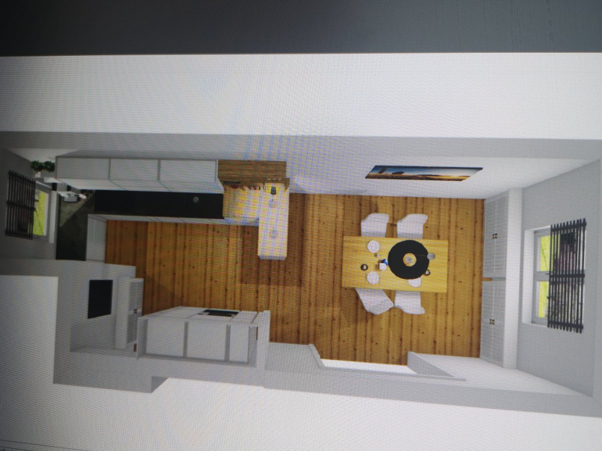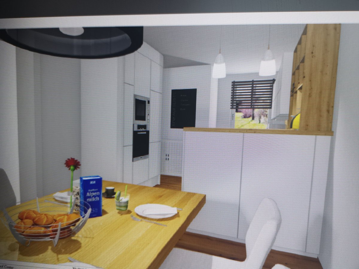 Die Wand zum angrenzenden Esszimmer wird - zumindest zu 3/4- wegkommen, da es sonst zu beengt in der Küche wird.