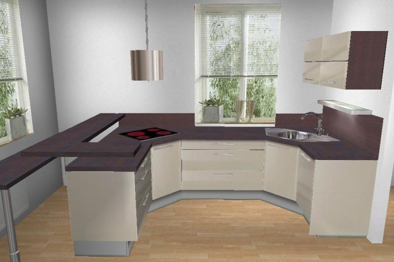 Eckspüle :-X und Theke inkl.. Ist ja wie immer Geschmackssache, aber schön und praktisch ist wohl eher was anderes.