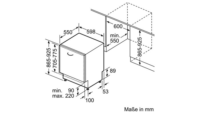 Der Spüler braucht eine mind. Nischenhöhe von 86,5 cm.
