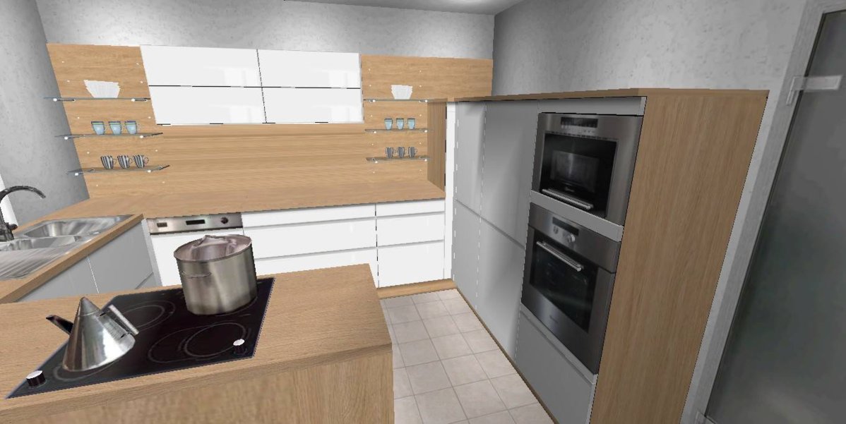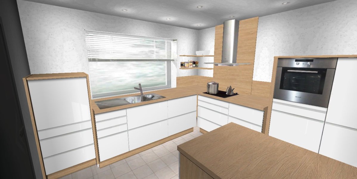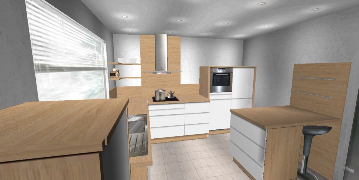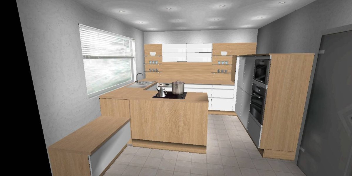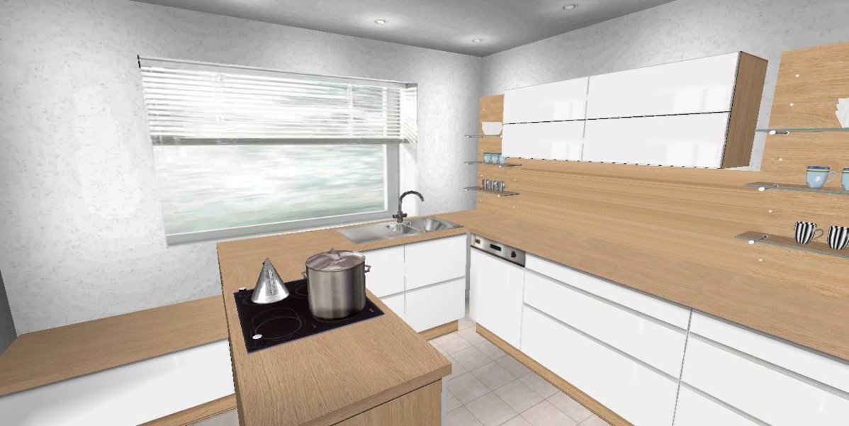 Wie wäre es, wenn du an der Sitzinsel die Rückwand höher machst und dann daran ein oder zwei Regal befestigst. Die Regal könnten entweder im gleichen Material wie die Rückwand sein oder die gleiche Farbe wie die Fronten haben. Auch Glasregale könnte ich mir vorstellen. Auf die Regal könntest du Deko, Kochbücher etc. stellen.