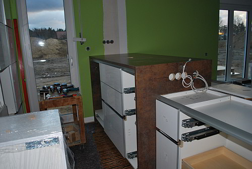 Mein Wunsch war immer eine große Küche mit viel Stauraum und einer reinen Arbeitsinsel auf der man auch mal einen Nudelteig ausrollen kann ohne die halbe Arbeitsplatte abräumen zu müssen. Daraus wird wohl nichts.