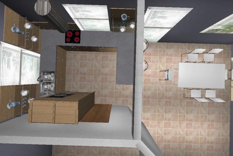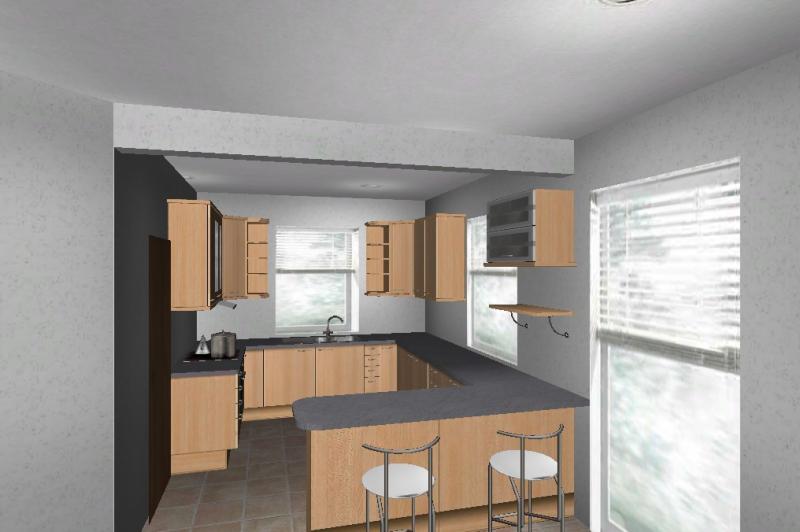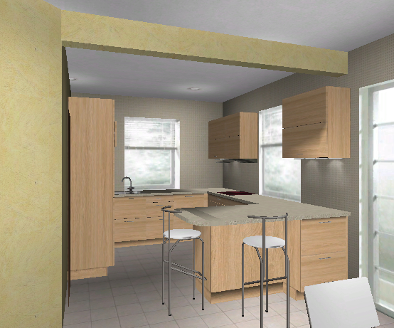 die Küche für unseren Neubau macht uns schon bei der Grobplanung einiges Kopfzerbrechen. Es ist wenig Platz für Hängeschränke, und wir haben kein vernünftiges Konzept für einen hohen Kühlschrank (geschweige denn einen Backofen ) gefunden - es sei denn, wir lassen den Raumteiler (die "Bar") weg :-\