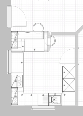 Und gleich die nächste Frage: Ihr habt zwei Außenwände in der Küche. Würde es sich da nicht anbieten, das Kochfeld an eine der beiden zu setzen, um mit der Abluft den kürzesten Weg gehen zu können? Dann könnte man die Innenwand auch als Hochschrankwand mit Kühlschrank usw nutzen. Diese eventuell sogar in den dahinterliegenden Raum (Flur?) "verschoben", so dass man nur die Türen sieht.