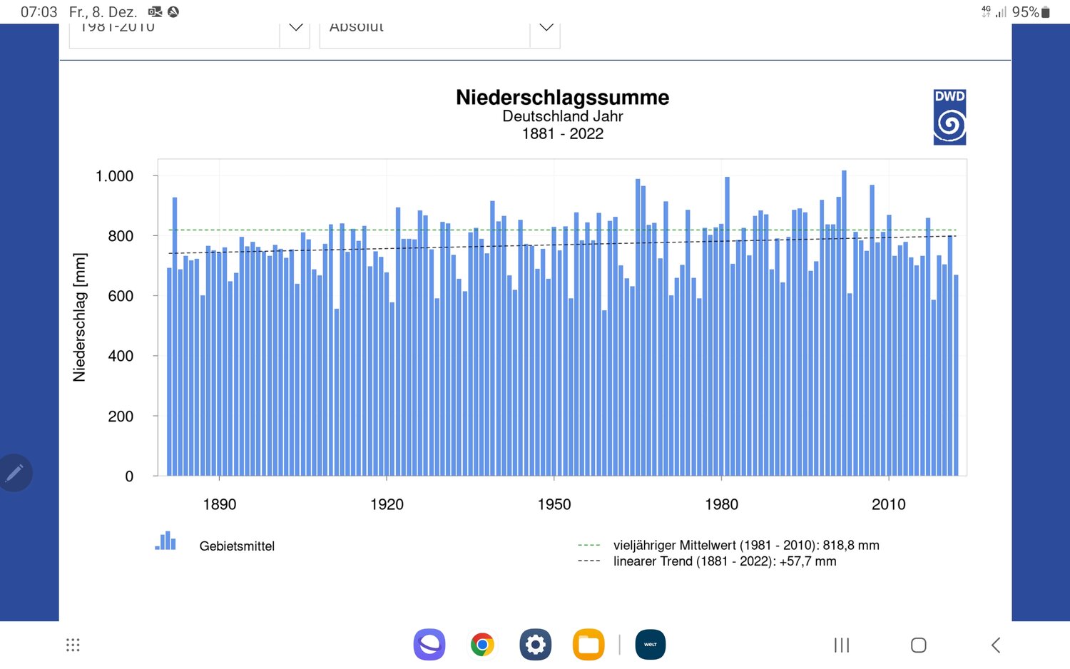 Der Niederschlag mag sich erhöhen, aber die Niederschlagsereignisse sind immer öfter punktuell auftretende Starkregen, die dann aufgrund ausgetrockneter Böden bzw. der Stärke des Niederschlags im Boden gar nicht richtig aufgenommen werden können, sondern schnell abfließen. Deshalb ist ja die Trockenheit in Deutschland auch nach diesem doch relativ feuchtem Sommer immer noch vorhanden.