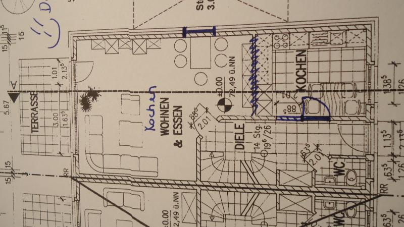 Wäre es möglich mal einen komplett vermaßten Grundriss Essen/Kochen/Wohnen zu erhalten? Auch mit den Wandbereichen jeweils bis zum Fenster?