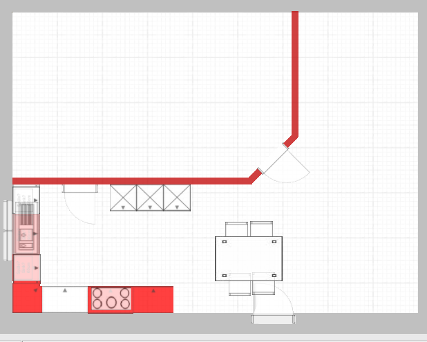 Ich hab mal versucht den Raum ein wenig an die tatsächliche Raumsituation anzupassen. Da müsstet ihr noch mal drüberschauen und berichtigen, was nicht richtig ist. Die Hängeschränke habe ich, der Einfachheit halber, jetzt ersteinmal weggelassen.