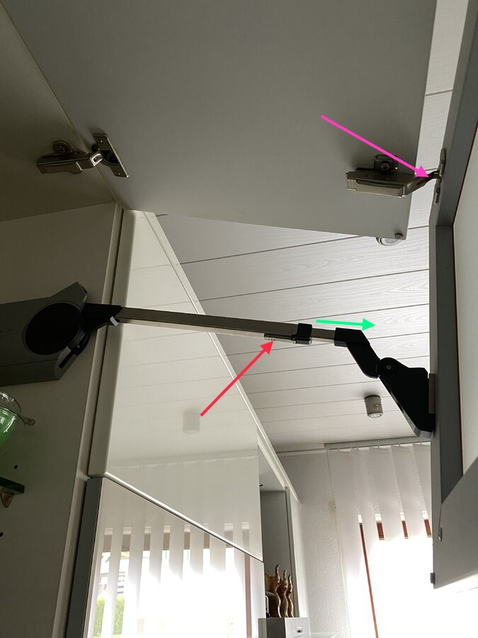 Vielen lieben Dank für die Info. Aber daran liegt es leider nicht. Es blockiert trotzdem egal wie weit ich die Arme rausziehe. Wenn der Hängeschrank bis zur Hälfte geschlossen wird, entsteht ein Kratzgeräusch was eher aus dem Kraftspeicher kommt.