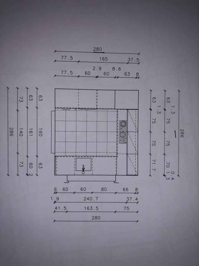 60er Geräteschrank mit Miele DGC 6805 (Festwasser) und Miele BO 6860. Den zweiten Abfluss für das Festwasser können wir glücklicherweise noch legen lassen; auch für später ist ein zweiter Abfluss an der anderen Küchenseite sicher nicht verkehrt, falls man mal umplant...