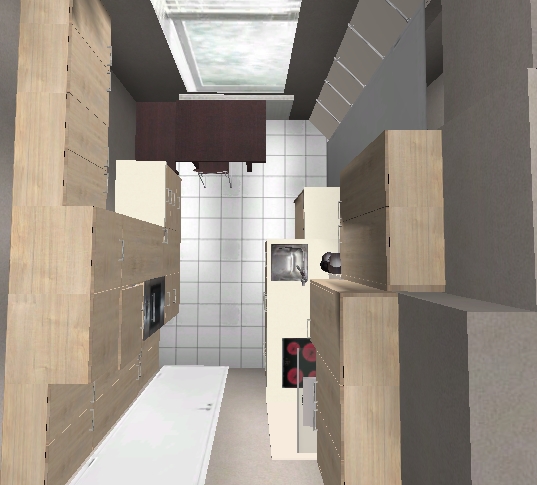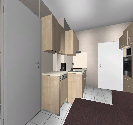Planlinks hinter der Tür dann tiefenreduzierte Hängeschränke übereinander, alternativ könnte ich mir hier auch ein Billy-Regal von Ikea mit Aufsatz und Türen oder evtl. sogar offen vorstellen. Die sind auf jeden Fall nur 28 cm tief, mit Türen eben max. die 31 cm und werden wohl preiswerter sein als die Lösung aus dem Küchenstudio .