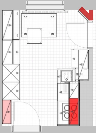 Ich wuerde mal versuchen das Koch Feld rechts der Eingangstüre zu setzen.