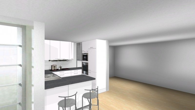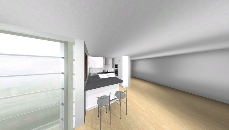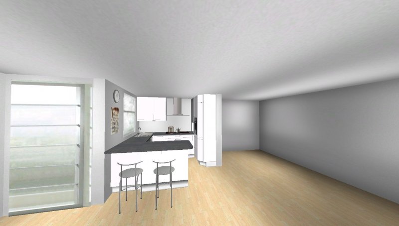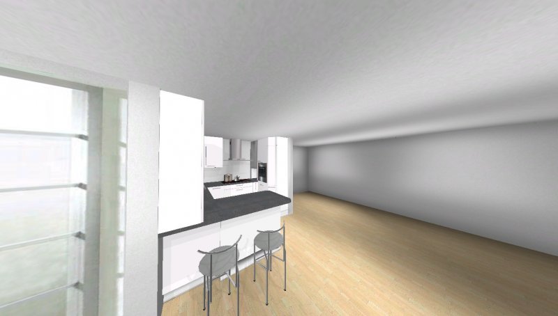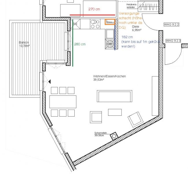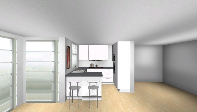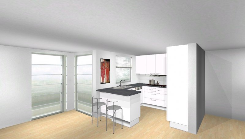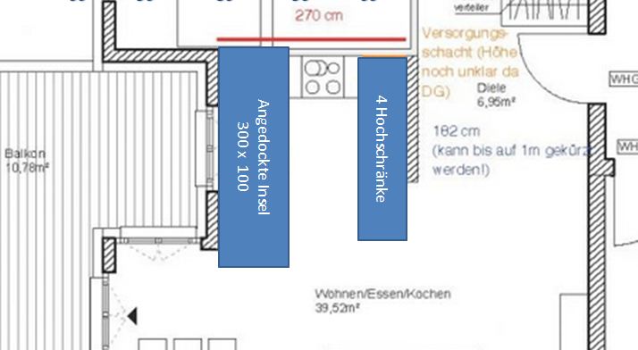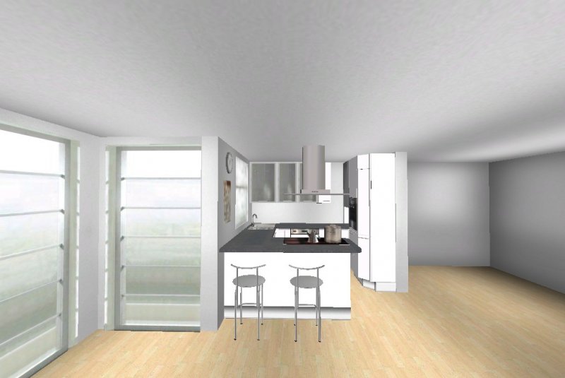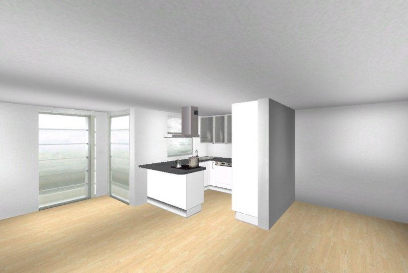 Grundsätzlich soll es eine moderne, weiß-matte Küche mit Metall- und Milchglaselementen werden - im Prinzip optisch wie in meinen Planungsvorschlägen. Es ist eine offene Küche, Pläne habe ich beigefügt. Etwas unklar ist noch der Einfluss des Versorgungsschachts im rechten hinteren Eck der Küche - da es sich um die DG-Wohnung handelt könnte ich mir vorstellen, dass er auch unter der Höhe der Arbeitssfläche enden könnte. Jetzt will ich aber nicht durch lange Einführungstexte langweilen und präsentiere mal meine drei Planungsvorschläge ;-):