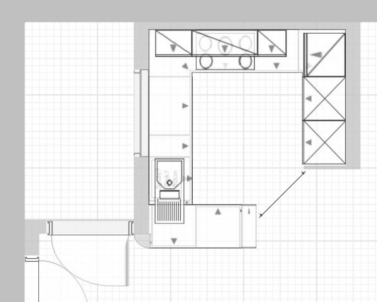 Zunächst mal die Grundrisse der Wohnung bzw. des Küchenbereichs zur Orientierung