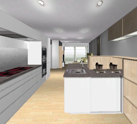 Den Abstand zwischen Kochzeile und Insel hab ich jetzt mit 120cm geplant.