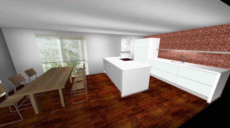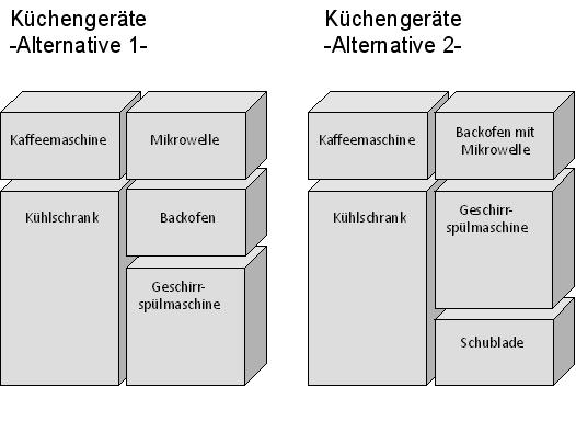Wir haben versucht, unsere Vorstellungen visuell umzusetzen. Leider ist uns im ALNO -Planer nur bedingt gelungen. So haben wir den Hochschrank mit den Geräten nur provisorisch dargestellt, da es unsere Geräteversion (49 l Kompakt-Backofen , Kaffeemaschine) scheinbar nicht gibt. Um es dennoch verständlich zu machen, haben wir die Geräteanordnung im Hochschrank als separate Datei angehängt. Hinsichtlich der generellen Gestaltung des Raumes sind die gewählten Farben nicht ganz passend: Fußboden -> Eiche; Fliesenspiegel -> Backstein-Riemchen; Küchenwand planrechts oben -> Sichtbeton; Küchenwand planlinks oben -> gestrichener Putz in grau.