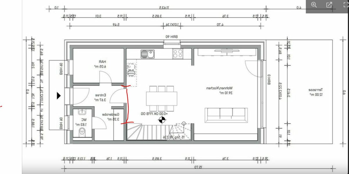 HWR planlinks einen Meter "klauen" um somit die Küche zu vergrößern. Folgender Hintergrund: