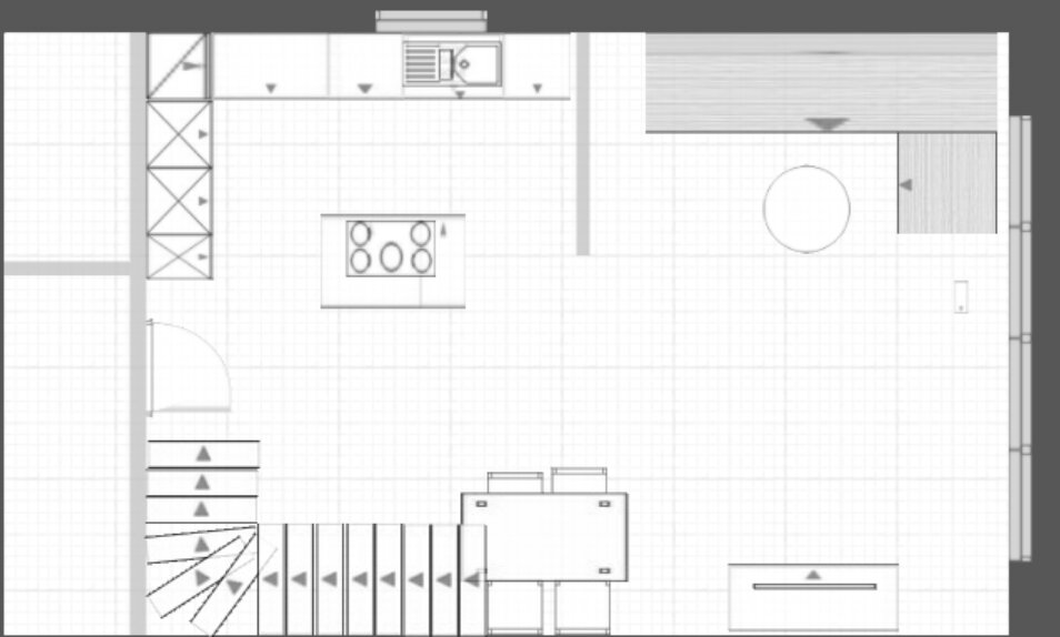 + in besagte Küchenwand könnte eine Tür integriert werden, die unter die Treppe führt, um den Stauraum dort für Vorräte nutzen zu können.