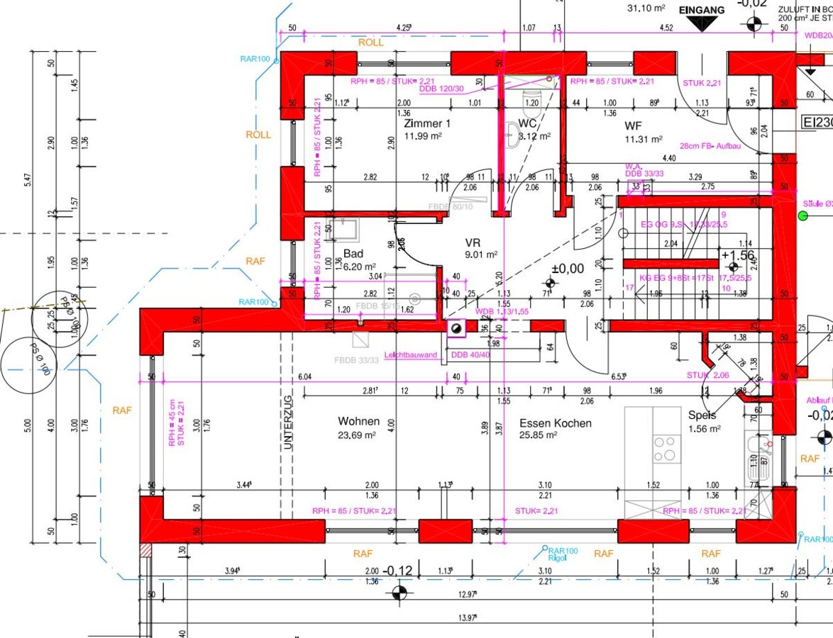Was mir im Polierplan noch aufgefallen ist, ist, dass ein Küchenfenster auf 87cm RPH ist und eines auf 85cm. Ich glaube, die 87cm sollten stimmen, oder?