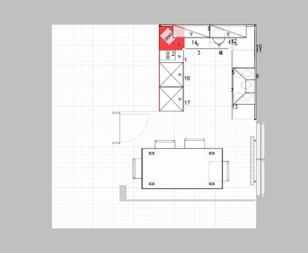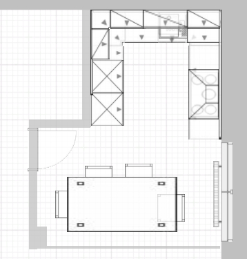 Alternativ hier den Backofen an stelle des Hochschrankes nach unten und dann wieder einen Hängeschrank oben drüber. Auf keinen Fall den 80er und 90er auf der Kochfeldseite zerreissen.