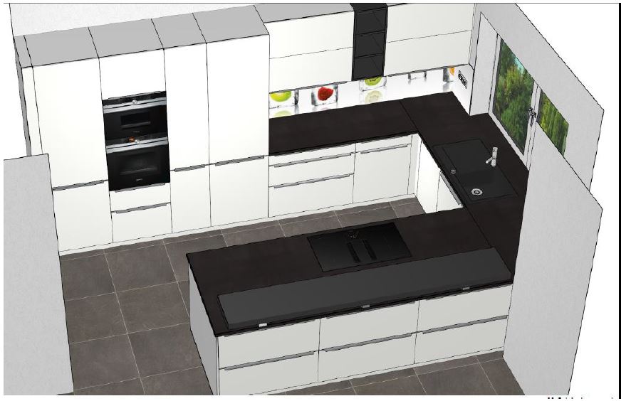 Es soll sich um eine U-Küche handeln. In der Anlage habe ich den Grundriss unseres Erdgeschosses beigefügt sowie der derzeitige Plan unserer Küchenplanung .