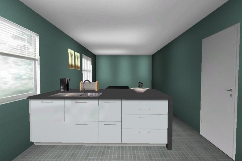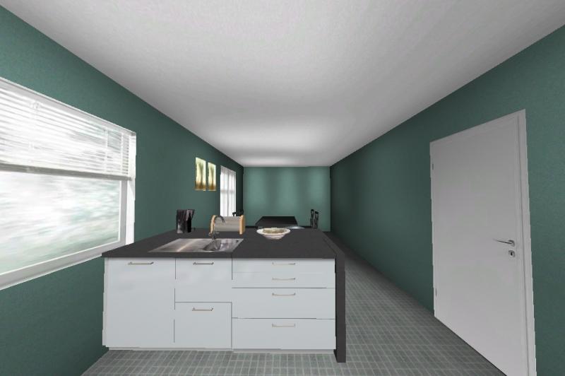 Leider muss es bei der Tür bleiben so wie sie ist. Ich will zumindest die Möglichkeit haben, sie offen stehen zu lassen - ich denke, die Insel müsste somit gekürzt werden. Der Heizkörper ist (noch) frei wählbar, ich tendiere dazu, ihn links von der Tür anbringen zu lassen.