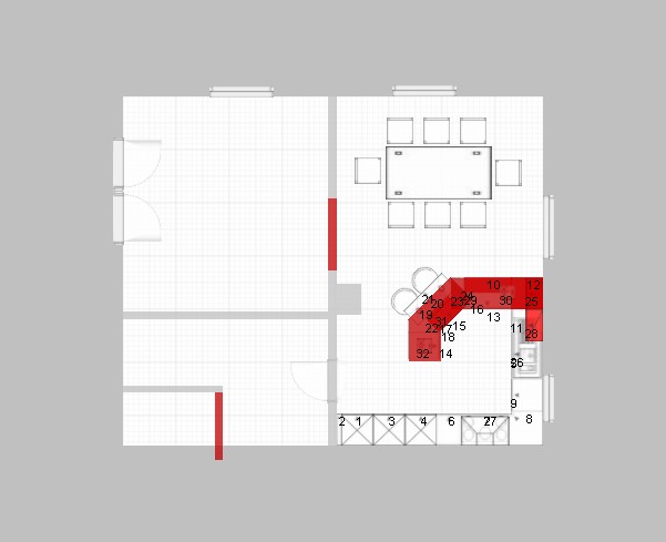 Und, dann noch der Weg in den Wohnbereich, der immer um den Tresen herumgeht.