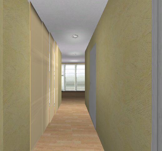 Ich stelle mir so wie auf deinem Vorschlag als Abtrennung zum Gang eine verspachtelte und gemalte (wie die Gangwände) Trockenwand vor,