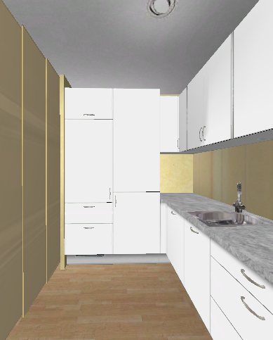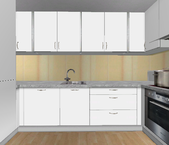 ich habe mal deine Küche versteckt und die 2x50 und 1x30er Unterschränke gegen 1x80 und 1x60 getauscht.