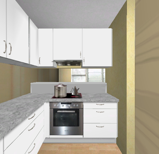 Ja es geht immer noch um meine neue Planung, mittlerweile war ich im ersten Küchenstudio , morgen bin im nächsten. Vom ersten Berater habe ich noch keine Angebot bekommen, aber ungefähr so wie im angehängten Bild könnte es aussehen. Wichtig ist mir eine große Arbeitsfläche, so hätte ich ungefähr 100 cm. Die Wasseranschlüsse sollten im toten Eck rechts sein, daher Spülmaschine und Spüle rechts ums Eck. Deine Idee mit dem Positionstausch von Spüle und Herd hätte mir sehr gut gefallen, das für mich optische Problem ist der Dunstabzug zum Essbereich hin, ich habe mir von Elica diese Hängelüfter angesehen, sie sehen aus wie eine Lampe, sind aber anscheinend nur für Umluft, so wie sie abgebildet sind.