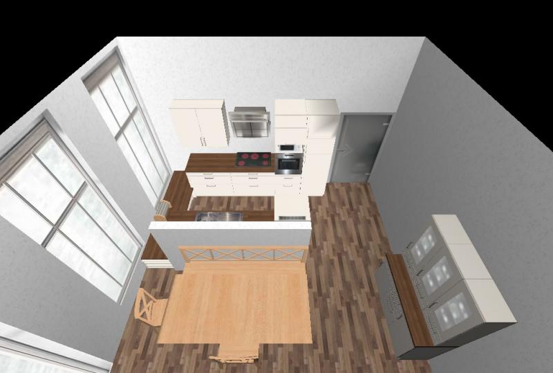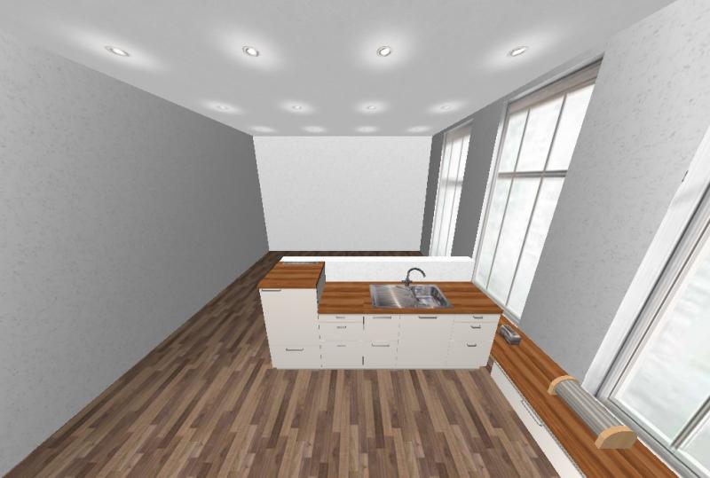 Alno Grundriss und zwei Bilder, die ich mit einem normalen Wohnungsplaner gemacht habe. Die Küche kann ich damit aber nicht genau planen. Gibt zuwenig Schränke zur Auswahl, soll nur einen ungefähren Gesamteindruck liefern.
