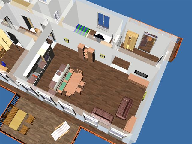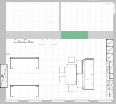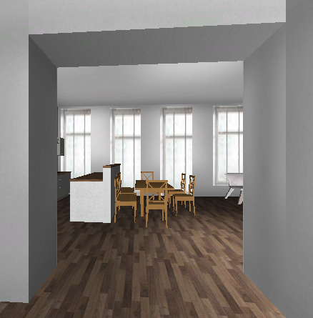Dann mal noch skizziert, wie der Raum weitergehen könnte. An der planoben-Wand ist er ja noch breiter als 930 cm ... geht halt mit dem Alnoplaner nicht darzustellen.