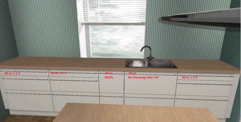 Was soll in der Küche außer den Standards untergebracht werden? : Geschirr komplett (nichts in Ess-/Wohnzimmer)