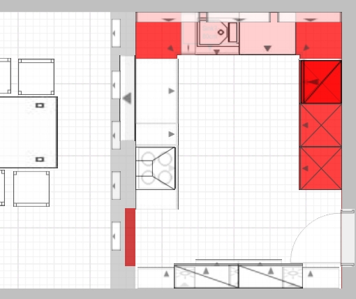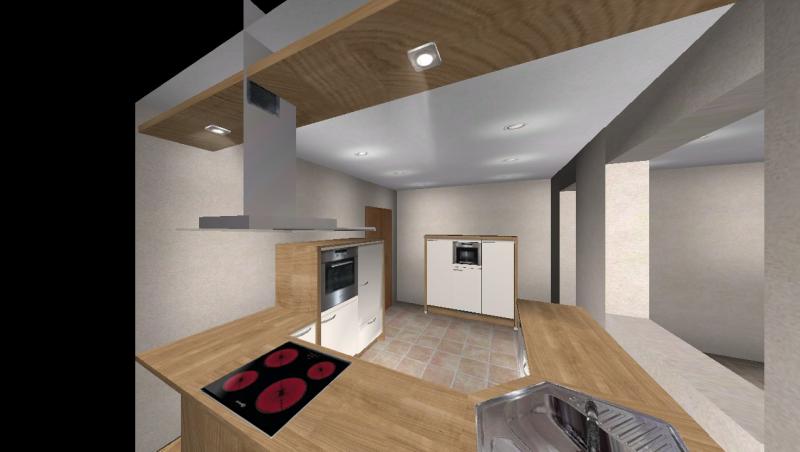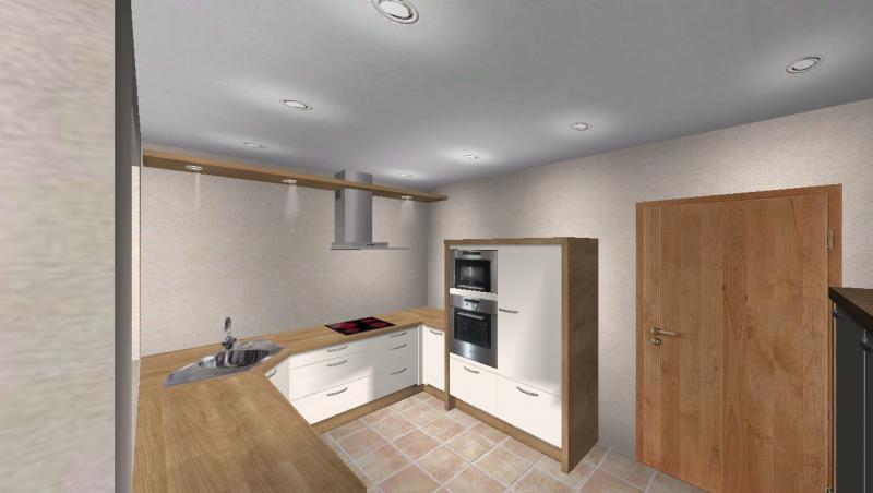 Zwischenzeitlich sieht der Planungsstand für die Küche in etwa so aus (siehe Anhänge). Entgegen der ersten Annahme, daß wir die Abluft über das Esszimmer nach aussen führen müssen, hat sich nun nach einigen Vermessungen der Aussenwände gezeigt, daß wir doch noch direkt aus der Ecke ohne Umweg rauskommen! Zu der aktuell geplanten Küche noch die Anmerkung, daß die 5 cm Seitenwände (Einfassungen) kein muß sind und wir diese nur bei "geringen" Mehrkosten, rein für die Optik nehmen würden. Die drei aneinandergebauten Schränke an der Wand sollen weiteren Stauraum bringen (Staubsauger, Besen, Getränkekiste, Lebensmittel,etc,) und kann sicher auch noch optimiert werden.