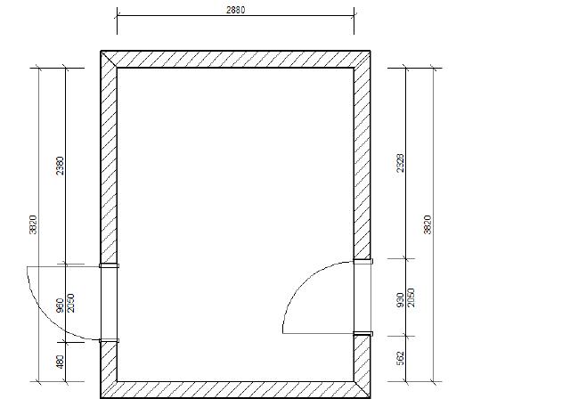 1.) Die Abluft muß in der Ecke oben links an der 288 cm Wand nach außen geführt werden