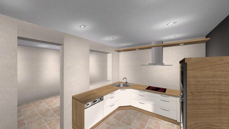 Aber sag mal, ließe sich der breite Durchbruch nicht doch in deiner vorherigen Anordnung lösen? Statt Herd nach außen Dunstabzug Richtung Decke?