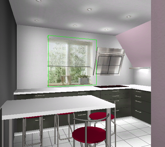 Wenn dieser Raum der einzige mit Essplatz ist, würde ich schon sehr intensiv an eine DAH denken. Und die läßt sich nun mal an der geraden Wand erstens mit viel weniger Aufwand installieren und auch das Abluftloch läßt sich einfacher installieren.
