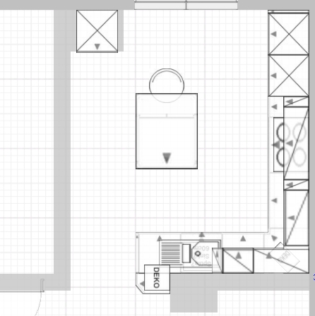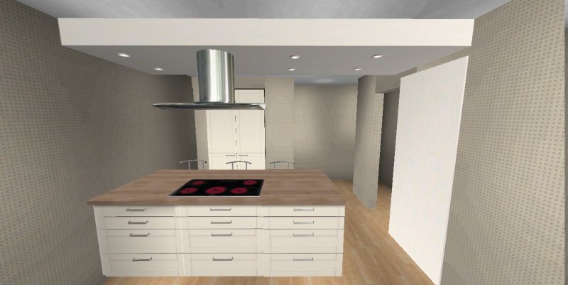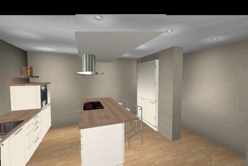 Deine Planungen funktionieren so leider nicht. Du hast nirgens Blenden eingeplant. Die braucht man, um Schränke öffnen zu können, sonst schrabt ein Auszug an der Wand entlang oder die Schrank- oder Kühlschranktür lässt sich nicht komplett öffnen. ;-) Die Kochinsel finde ich viel zu klein, hinterm Kochfeld würde ich auch nicht sitzen wollen, Fett spritzt relativ weit.
