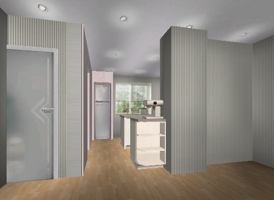 Ok, dann müsste man die Schräke "in" der Wand etwas vorziehen... Es bleibt dann immer noch 106cm Platz zwischen Insel und Putzschränke.