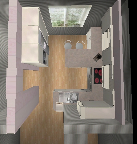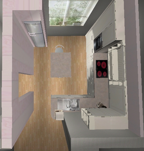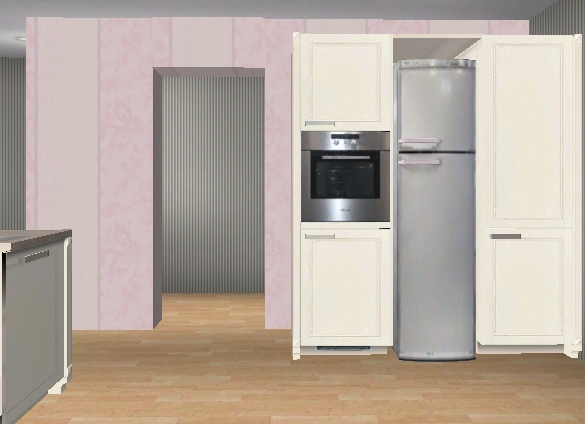 Leider ist oben der Durchgang Inselecke/Kühlschrank etwas eng. Allerdings wird der Weg wohl auch nicht zu häufig sein.