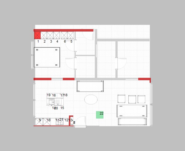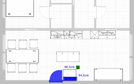 wenn man jetzt die unkonvetionellere Variante wählöt und den Essplatz am Fenster, dafür das Sofa in der Mitte, dann wäre sogar der Kamin (grünes Viereck bzw Backofen als Platzhalter) realisierbar.