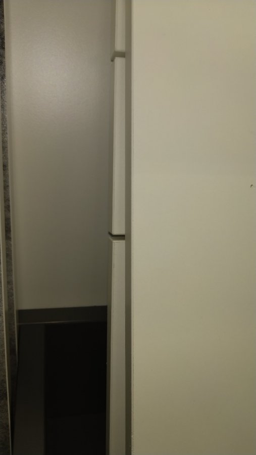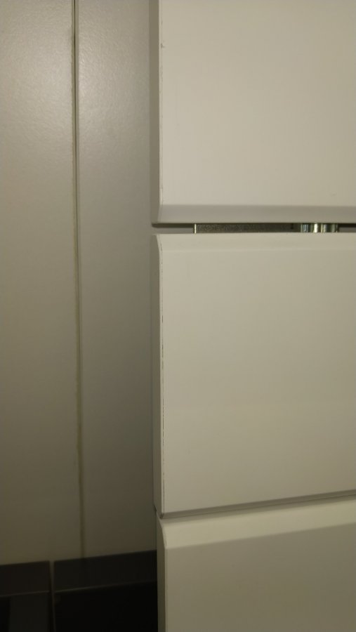 Im zweiten Bild ist der weniger tiefe Schrank rausgerutscht