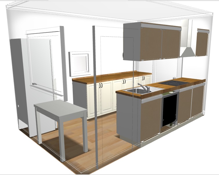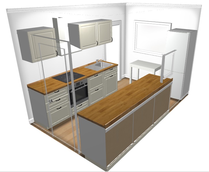 An die Dicke des Türblattes hatte ich ansatzweise dran gedacht. Meine Überlegung war, mangels nur 246cm breiter Arbeitsplatten von IKEA die beiden Küchenzeilen ca. 5-10cm von der schmalen Wand mit der Tür abstehen zu lassen. Dann ist zwar zwischen Wand und Schrank und auch zwischen Wand und AP eine kleine Lücke, damit kann ich aber leben...