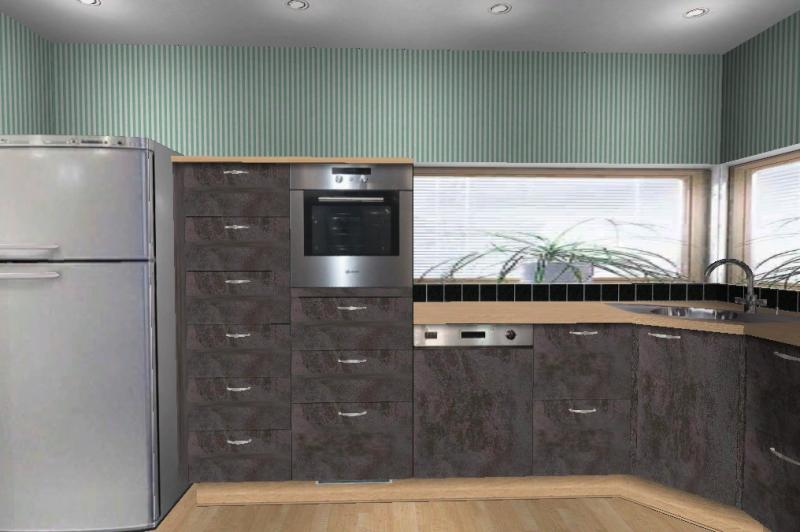 Ich werde heute Abend noch ein bisschen basteln... Der Müll sollte ins Eck kommen. Hab jetzt aber gar keinen Eckmüllschrank gefunden. Da ist jetzt so ein Drehschrank drin...