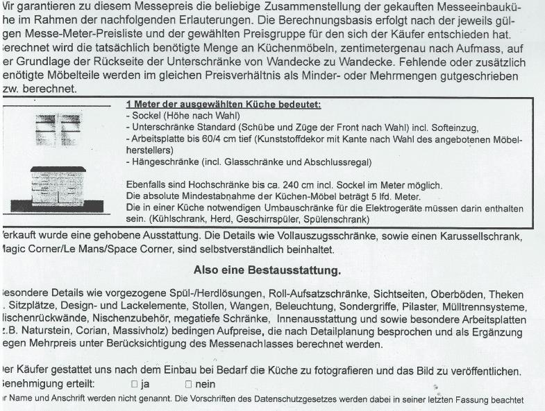 Frag, ob es da eine Möglichkeit gäbe. Du könntest z.B. anbieten, einen prozentualen Anteil am Kaufpreis zu bezahlen, möglicherweise in Form eines Gutscheins, also dass Dir dieser Betrag angerechnet würde, wenn Du in dem Möbelhaus eine neuen Kaufvertrag für eine Küche unterzeichnest.