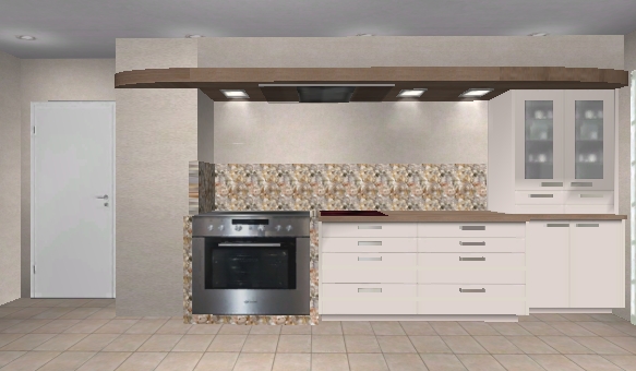 Die Kochfeldzeile könnte mit so einem Aufsatzschrank enden für Gläser oder so.