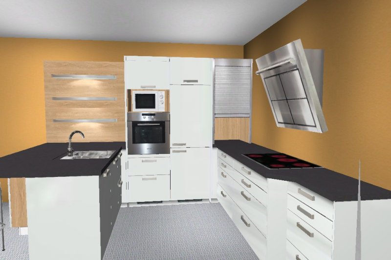 Habe erstmal großspurig über Arbeitsinseln gesprochen und Kochen an der Wand . Aber nach der 1. Planung , bin ich leider auch auf Kochen in der Insel gelandet.