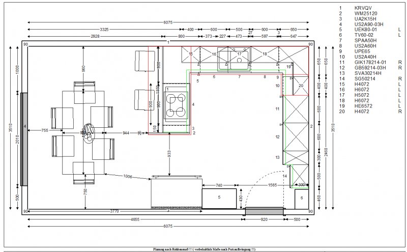Die Kochmaschine hab ich nur so aus den Grafikartikeln eingestellt und vorsichtshalber die Große mit 1100mm Breite genommen.