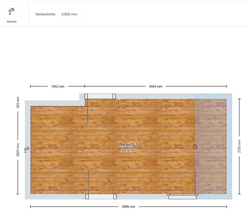 Die vorhandenen Türen (Tür zur Dachterasse und Tür in den Flur) sowie das Fenster müssen so bleiben. Von dem aktuellen Zustand gibt es auch noch keine Zeichnungen.