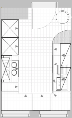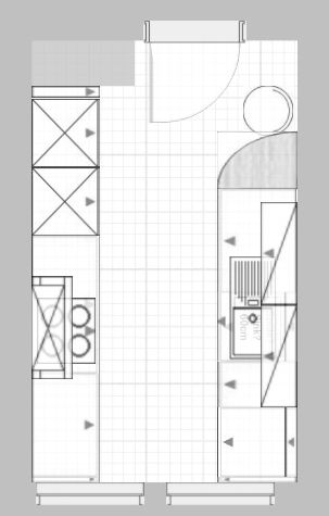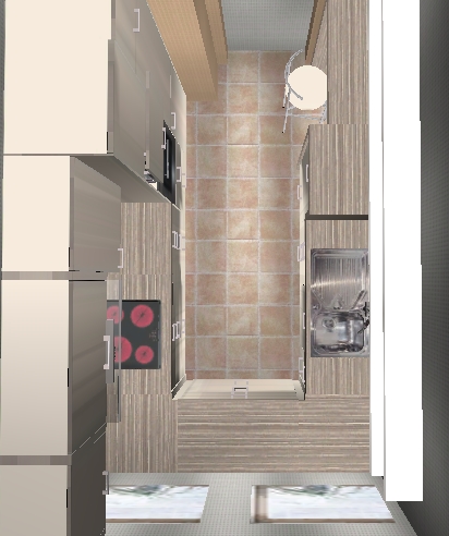 • gegenüber wieder eine Blende und die Zeile übertief! Wasseranschlüße lassen sich so ggf. hinter den Schränken verlegen und du hast mehr Arbeitsfläche und in den tieferen Schränken auch mehr Stauraum