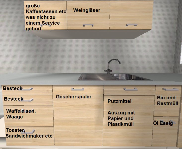 Das mit der Spüle sehe ich auch ein. Deswegen wird der Plan erst mal so bleiben...